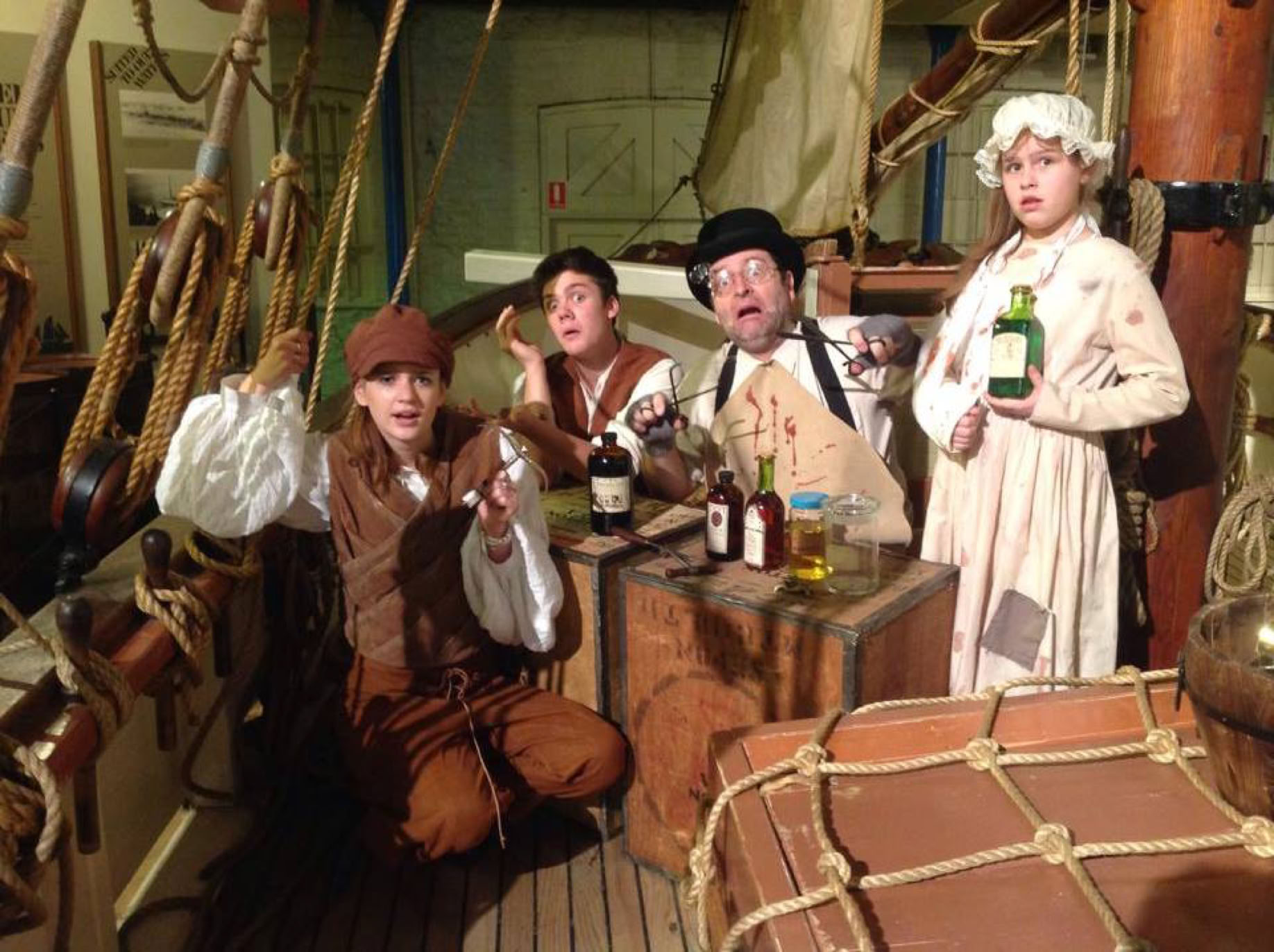 Laura Williams, Michael Mills and Gemma Dandie on board the One and All sailing ship